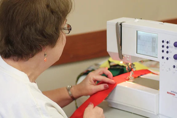 “I think I’m going to like this,” she said, smiling as she ran the fabric through the sewing machine.