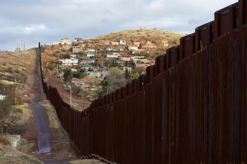 The bollard steel border fence splits the U.S. from Mexico in this view west of central Nogales, Ariz., Feb. 19. (CNS photo/Nancy Wiechec)