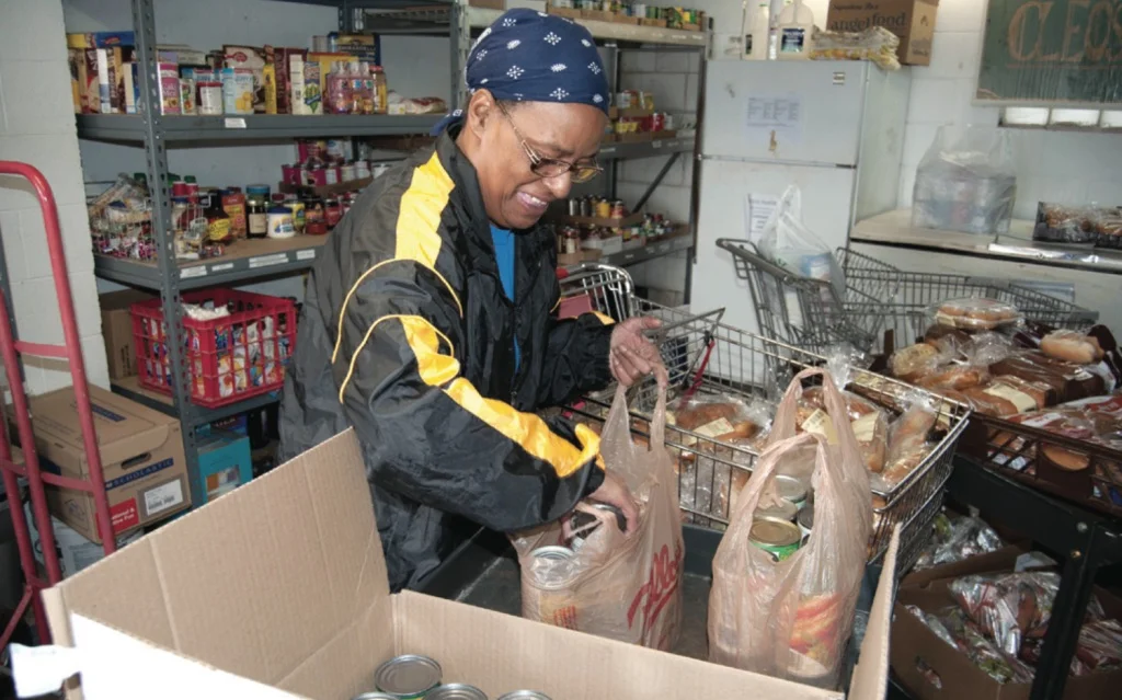Volunteer Gretta Burnnett sorts donated food in the ministry’s food pantry. Each food pack has eight to 10 varieties of nonperishable food. The ministry also has a mobile pantry to reach those unable to travel.