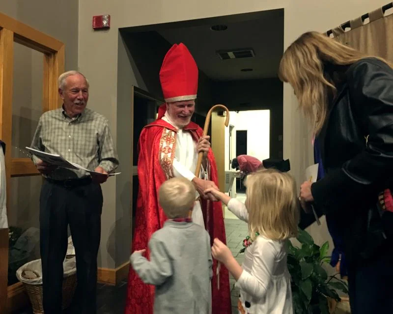St. Nicholas Church hosted a visit from its namesake to anticipate his Dec. 6 feast day. A white-bearded man wearing a miter and long red robes made a surprise appearance at the Sunday Vigil Mass Dec. 2 and handed out ornaments to all the parishioners.