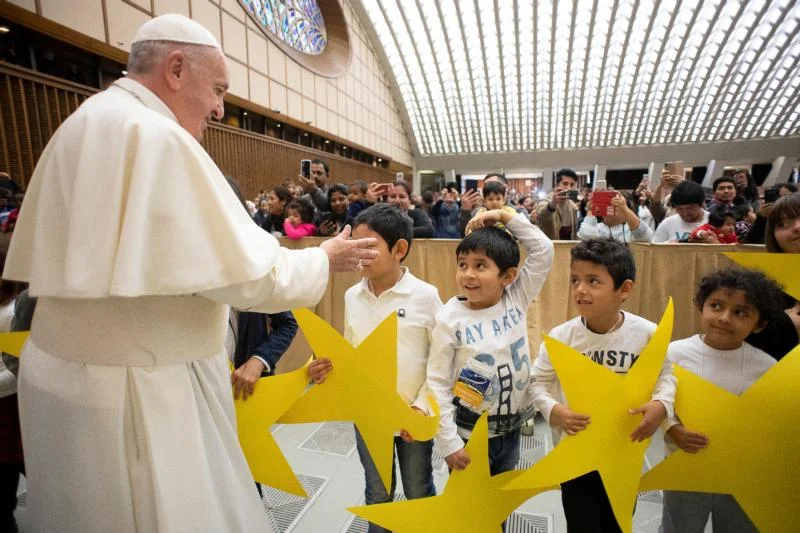 The pope’s morning meeting with the children was billed as a pre-Christmas greeting, but the little ones also used it as an opportunity to mark the pope’s 83rd birthday, which was Dec. 17.