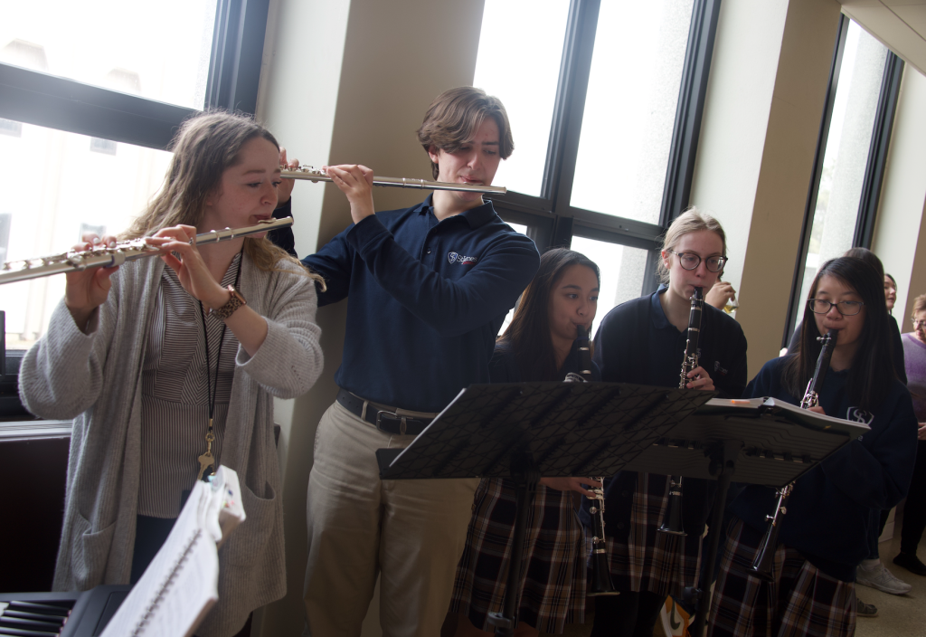 “Like you students, I was an artist in high school and grade school,” she said, “but I didn’t have the opportunity to where I could use my voice, my talent [and] my tools to shout for joy the word of God.”