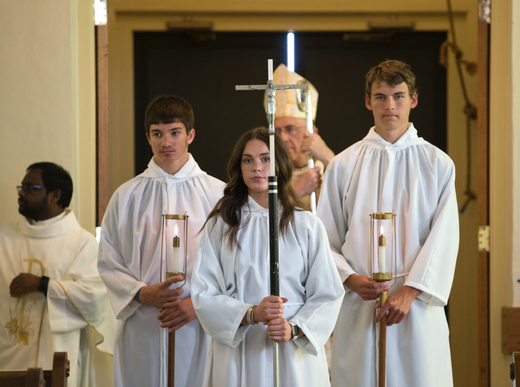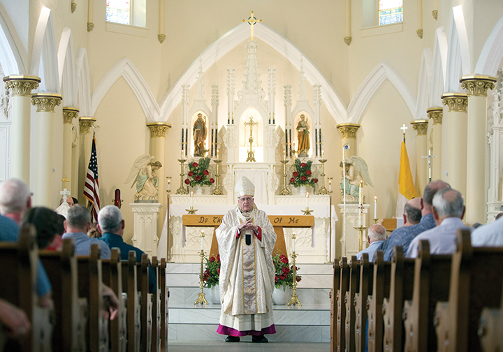 On May 13, Archbishop Joseph F. Naumann was the main celebrant and homilist at a Mass to bless the renovation — both inside and out — of the venerable red-brick church built in 1908. The pastor, Father Anthony Chendumalli, concelebrated. Seminarian Cesar Gomez assisted.