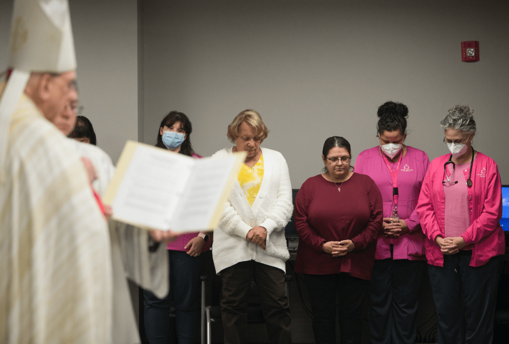 “I had a chance to witness firsthand the beauty of the ministry you do,” said Archbishop Naumann. “Thank you for helping us as a church to be present where we really need to be, with those who are dying and with their families . . . bringing the best comfort care we can bring, but [also] bringing the truth of Jesus’ victory over death.”