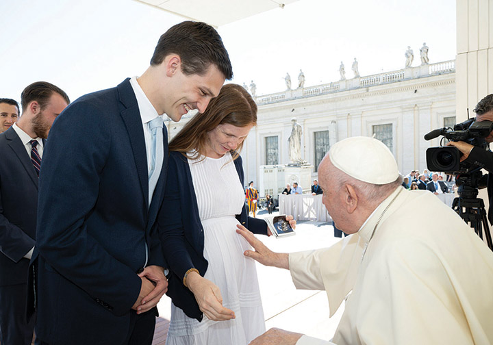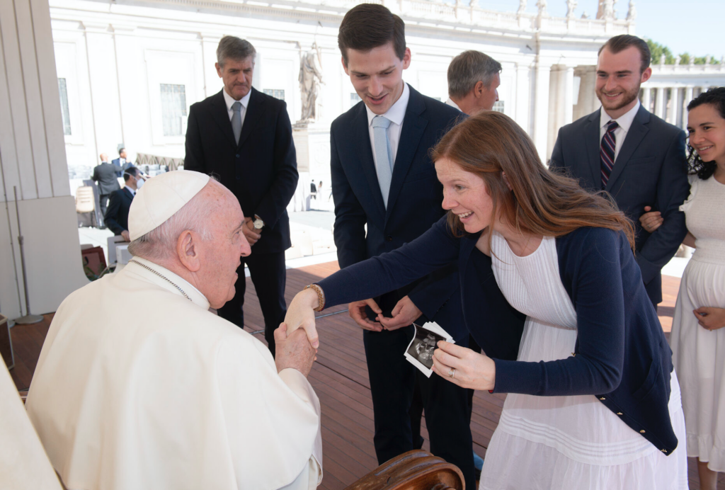 Taylor “in her feminine genius and with great foresight,” Matt said, had brought the ultrasound picture of the couple’s first child, holding it in front of the pope.