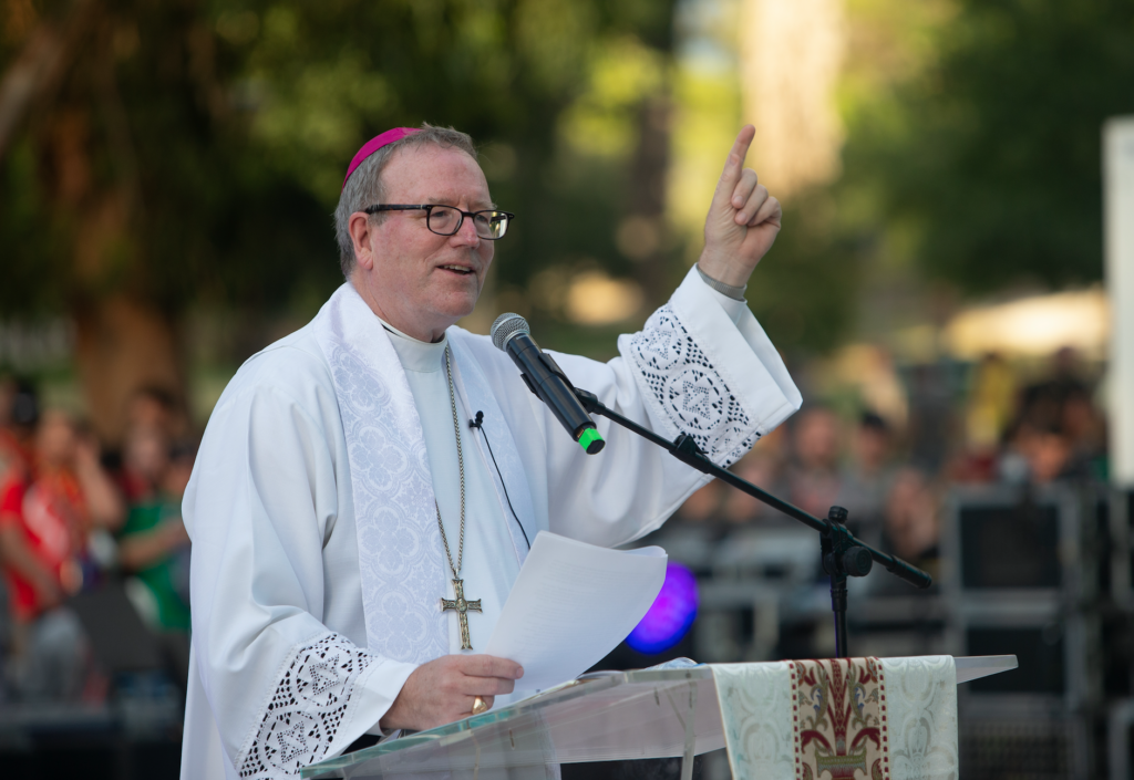 Bishop Barron was walking toward the stage to speak to the 20,000 American teens gathered in Parque da Quinta das Conchas on Aug. 2 when he was briefly interrupted.