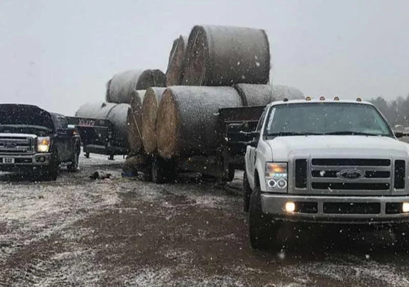 They contacted the Kansas Livestock Association, which connected them to a farmer in Minneapolis, who would donate 150 big, round bales of hay.