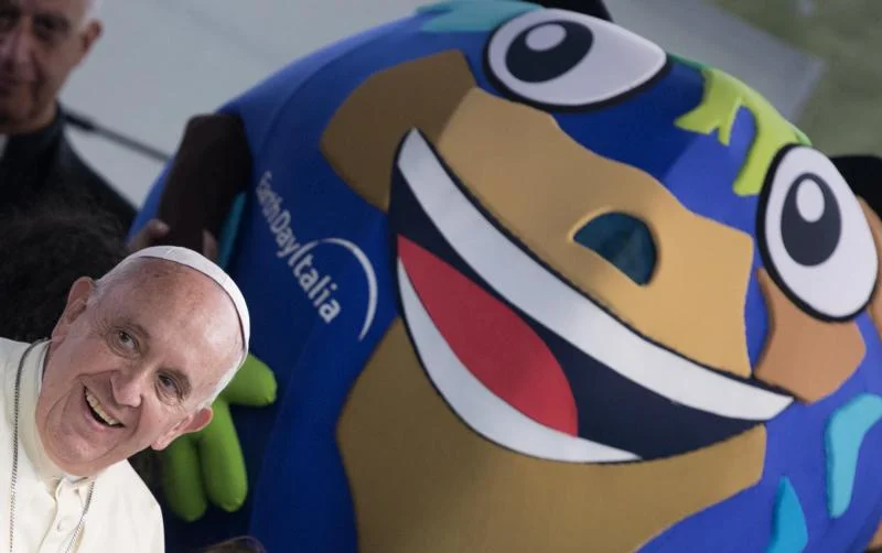 Pope Francis smiles as he attends an Earth Day celebration April 24 at Villa Borghese Garden in Rome. (CNS photo/Claudio Peri, EPA)
