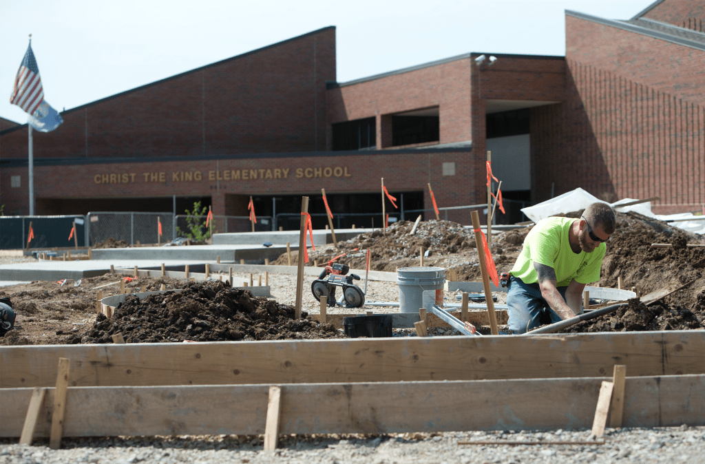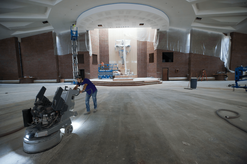 Christ the King Parish is renovating the church interior, improving the parking lot, creating a green space, making a covered drop-off area and centralized pedestrian entryway, and improving handicapped accessibility. The parking lot and outside work should be done by the end of September, and the church interior should be finished by Nov. 19.