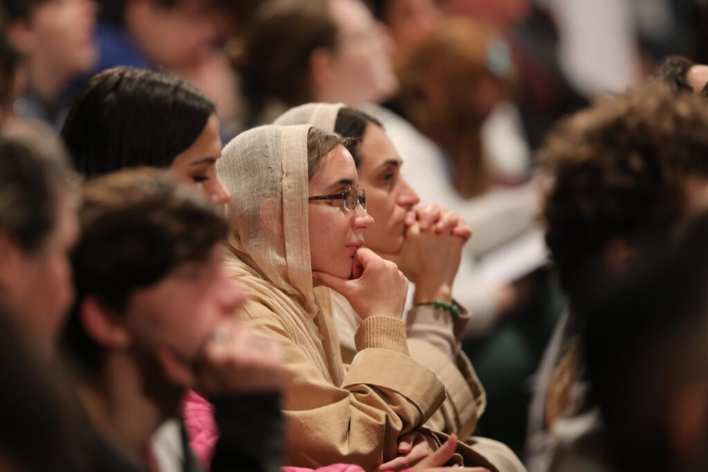 The Mass drew between 6,000 and 6,500 people, with most of the congregation filling the Great Upper Church. Dozens also viewed the Mass on screens set up on the lower level of the basilica.