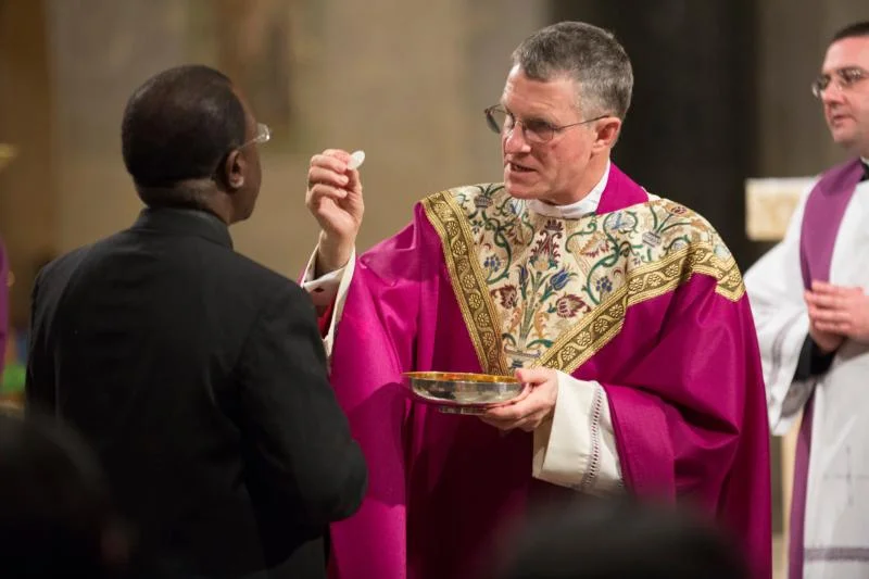 Archbishop Timothy P. Broglio of the U.S. Archdiocese for the Military Services distributes Communion during the “24 Hours for the Lord” Mass at the Basilica of the National Shrine of the Immaculate Conception in Washington March 3. (CNS photo/Jaclyn Lippelmann, Catholic Standard)