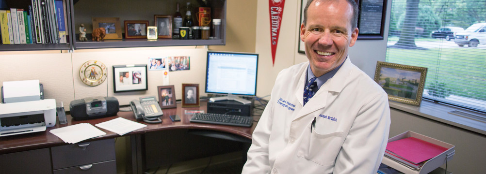 Simply put, he works to cure people of blood cancers through stem-cell transplants. Restoring people to health and saving their lives gives him a tremendous sense of fulfillment.
