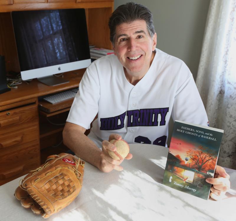 Tom Murray of Shoreview, Minn., holds a copy of his novel about baseball and rural life in Iowa titled “Fathers, Sons and the Holy Ghosts of Baseball.” (CNS photo/Dave Hrbacek, The Catholic Spirit)