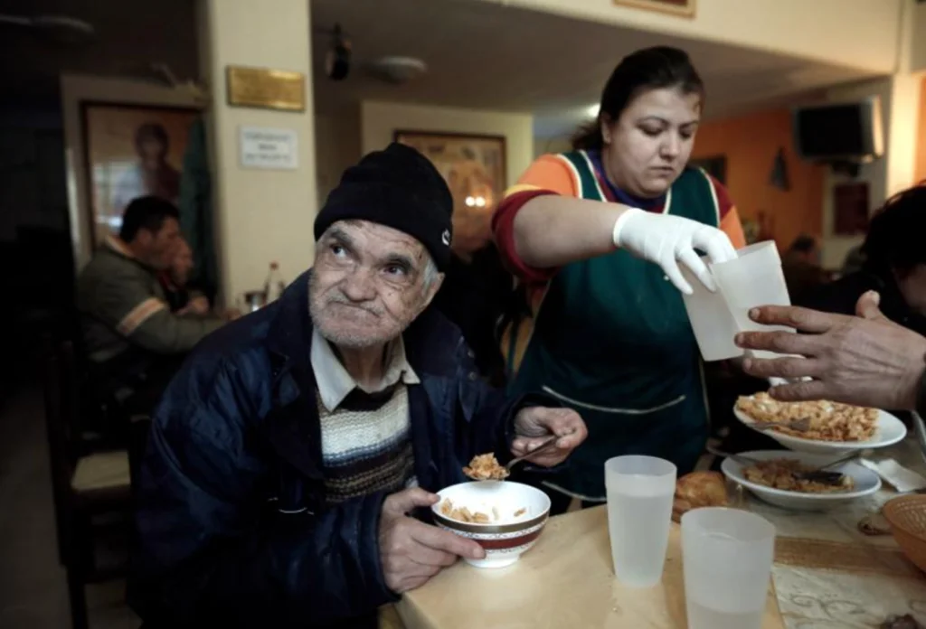 A homeless man eats his meal in 2015 at a soup kitchen run by the Archdiocese of Athens in Greece. Europe's top Catholic charitable agency has published a "road map for social justice and equality," urging all church members to defend the poor and marginalized. (CNS photo/Yannis Kolesidis, EPA)