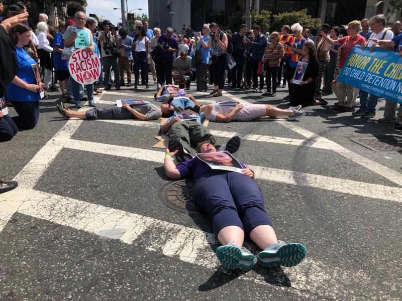 WASHINGTON (CNS) — Cardinal Joseph W. Tobin of Newark, New Jersey, blessed and then prayed near a group of Catholics who blocked a crosswalk, arranging themselves in the shape of a cross in front of Immigration and Customs Enforcement in Newark Sept. 4, to protest the detention of children and families in immigration facilities.