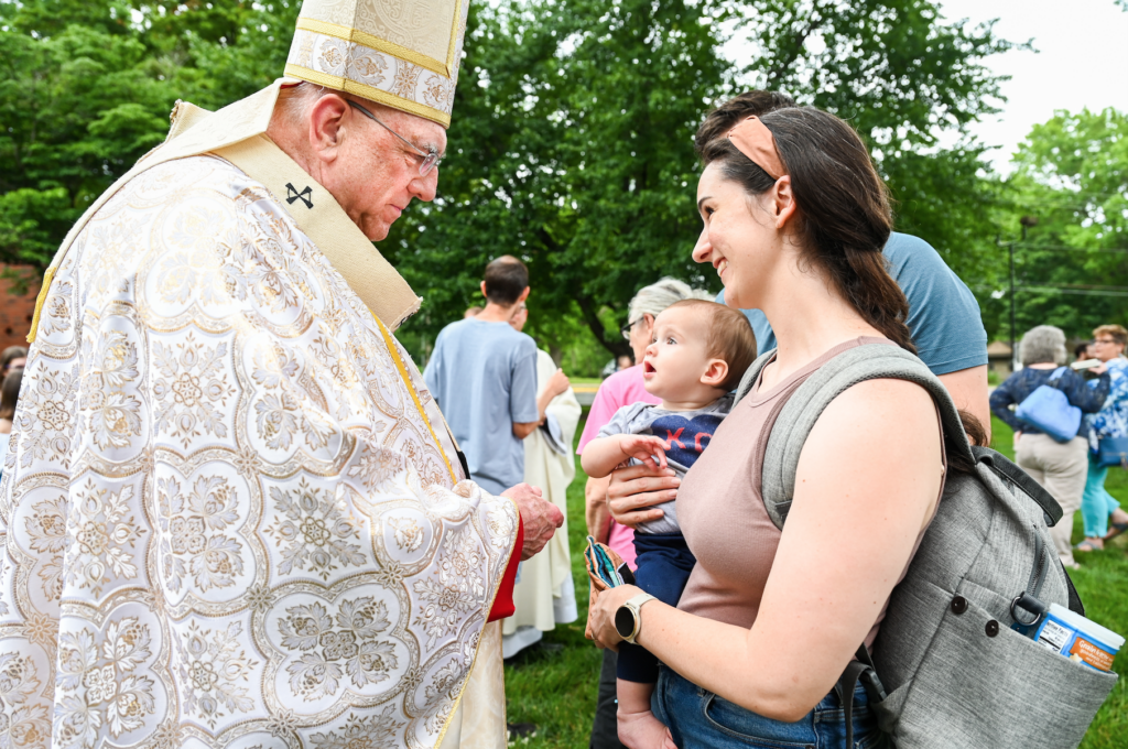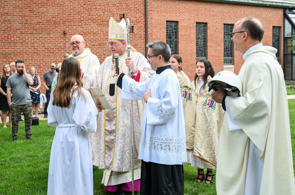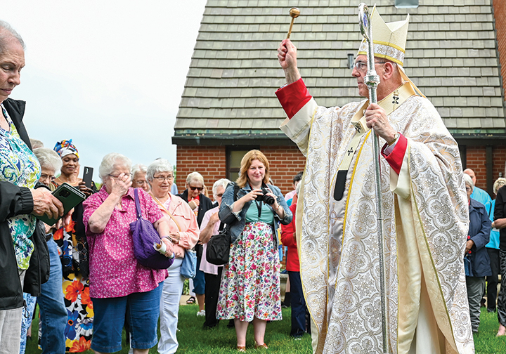 “Congratulations on this undertaking,” Archbishop Joseph F. Naumann, who officiated the brief June 10 ceremony, told the 50 or so assembled. “It’s quite an accomplishment. I salute the parish for doing this. We just pray that this center will be a place where many will come to be strengthened and renewed, and deepened in their faith, and that it will be a place of great fellowship and learning, inspiration and joy.”