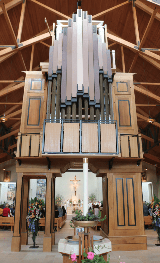 That’s when parishioners Terry and Donna Thomas formed the Holy Angels Music Guild to raise funds privately. Other guild members included Jacques and Sara Moraille, Tim and Diane Jones, Tim and Jeri McDonnell, Laura Beeves, Craig Gaffney and Vogt. The guild set up an account with the Greater Kansas City Foundation in the form of a 501(c)(3), and donations poured in, allowing the parish to officially purchase the instrument in September 2020.