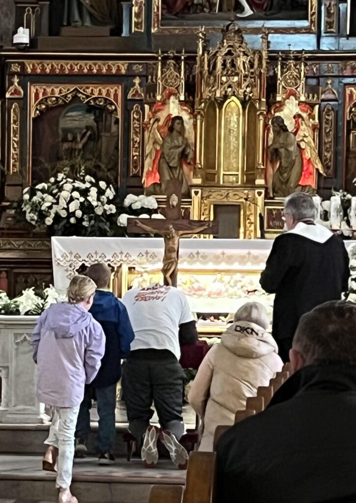Arek Szura made his way up the church’s aisle and knelt before the crucifix that had been laid out for veneration during Good Friday services.