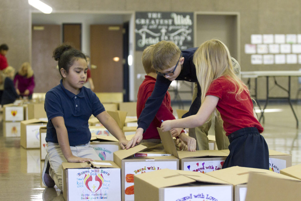 The fifth-grade students also drew pictures on prayer cards that were placed in each box, Legako explained.
