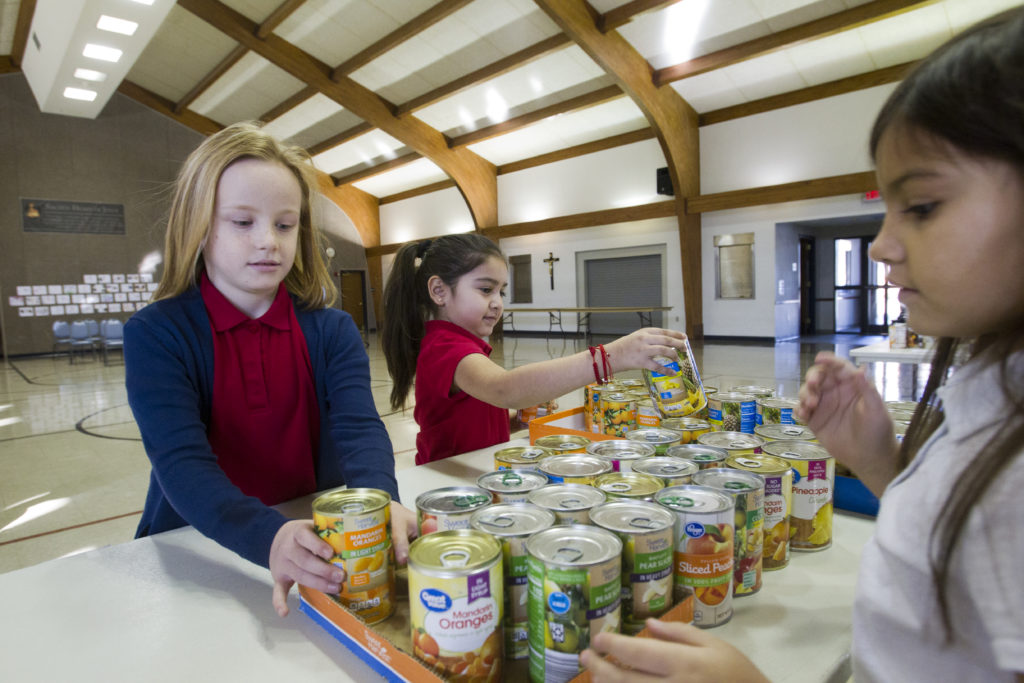 The visitors who arrived at the parish that day were there to collect a box filled with food — a gift from the students and their families.