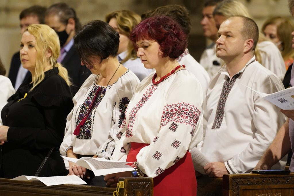 Many of the faithful gathered to pray for their family members and friends in their homeland and for the very future of the country, which was invaded by Russian forces Feb. 24.