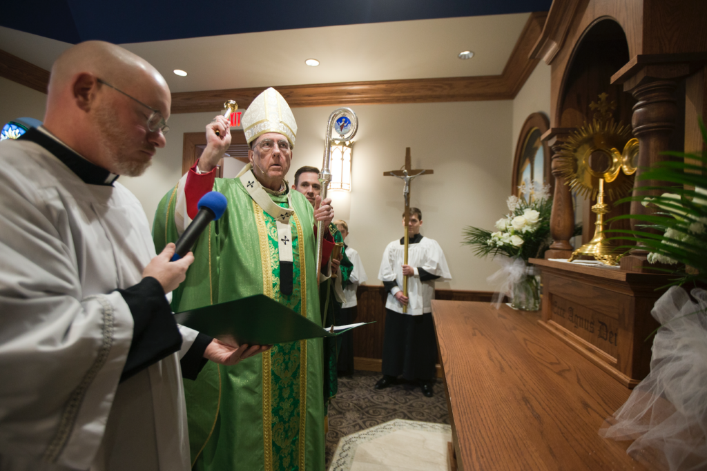 There was nothing coincidental about the wooden adoration altar that graces the new chapel, however.