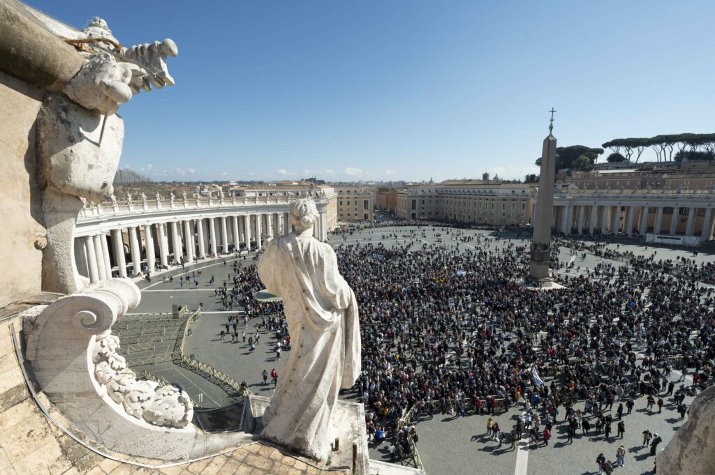 Speaking to some 25,000 visitors gathered to pray the Angelus in St. Peter’s Square March 5, the pope reflected on the day’s Gospel reading from St. Matthew of Jesus’ Transfiguration, in which he appears to the disciples in radiant glory.