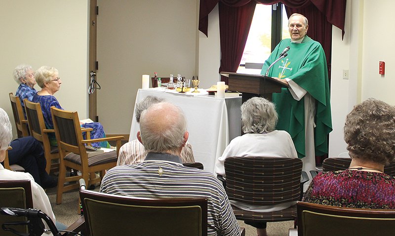 Father Tom Hesse celebrates Mass for Topeka’s Atria Hearthstone Community, one of the many efforts of Most Pure Heart of Mary Parish’s ministry to the aging. Leaven photo by Marc Anderson