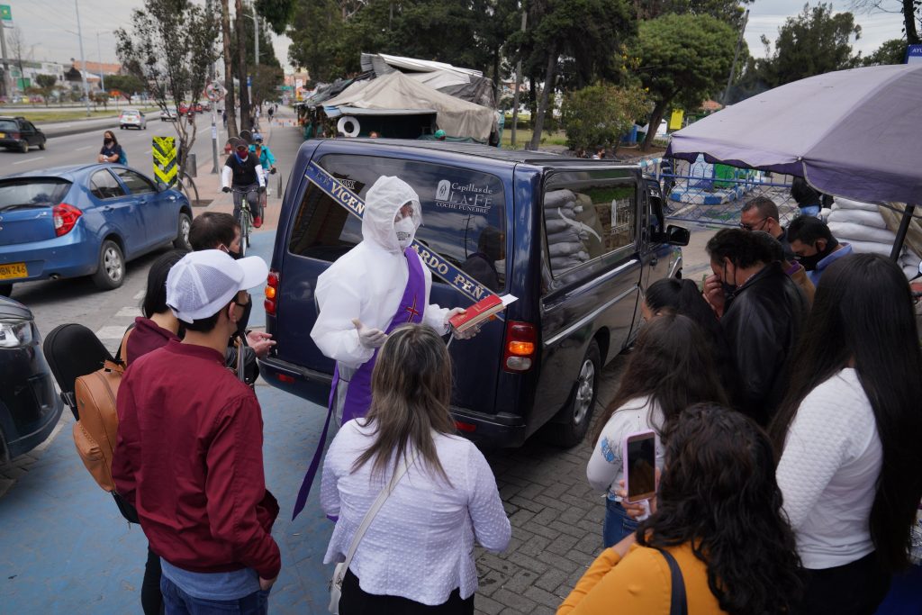 The demand for these roadside services has grown considerably over the past two months, said Deacon Castiblanco, who has done up to 14 services in one day outside cemeteries in Bogota.