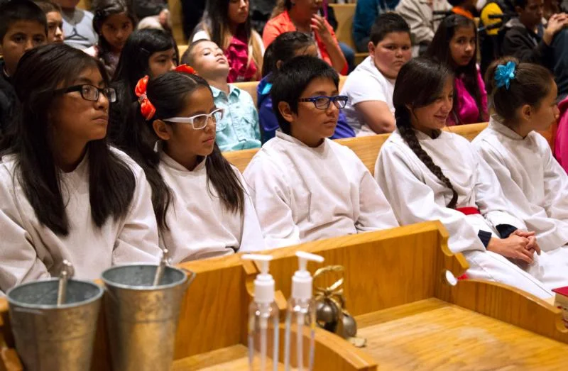 Altar servers listen during a November 2015 Mass at St. Jerome Catholic Church in Jerome, Idaho. Catholic leaders say if there is to be a strong 22nd-century mission church, the mission church of the 21st century must foster solid Catholic values among the young and teach them how the faith will enrich their lives. (CNS photo/Chaz Muth)