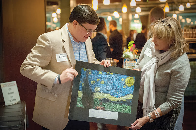 “Our planning committee did an amazing job of organizing the event,” she said. “Taylor Byrd and Sean Tokic organized the entertainment, including the acoustic guitarist and the photo booth. Matt Ledom and Jake Sorenson worked closely with the CEF office in securing underwriting sponsors and donations from Manny’s and Cakes by Aggie for the evening’s refreshments. Zach Dehaemers curated a terrific exhibit of local professional artists.”