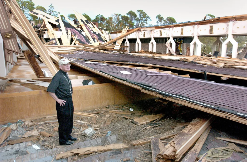 Father Arthur “Red” Ginart, the pastor of St. Nicholas of Myra Parish on Lake Catherine, was feared dead because he refused to leave his rectory, which was washed away. His body was never found.