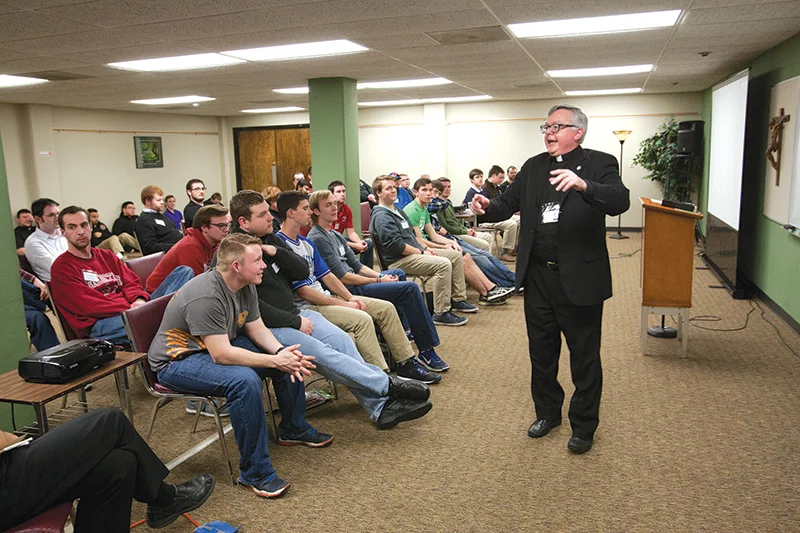 Msgr. Stuart Swetland, president of Donnelly College in Kansas City, Kansas, was the featured speaker at the “Quo Vadis” retreat Dec. 19-21. “Quo Vadis” is designed to help high school seniors and college-age men decide if they might explore a vocation to the priesthood at a seminary. Photo by Jay Soldner