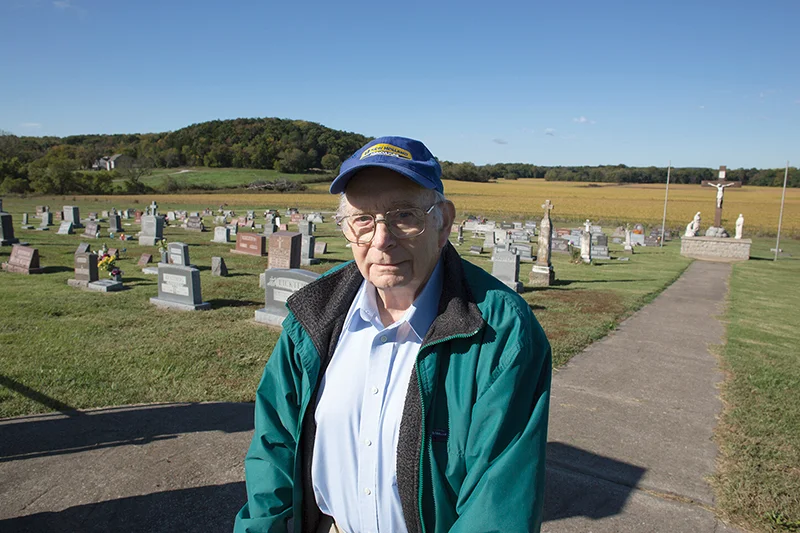 At St. John Parish in Greeley, Richie Rommelfanger keeps track of who is buried where in the parish cemetery, as well as selling and marking off lots for new burials