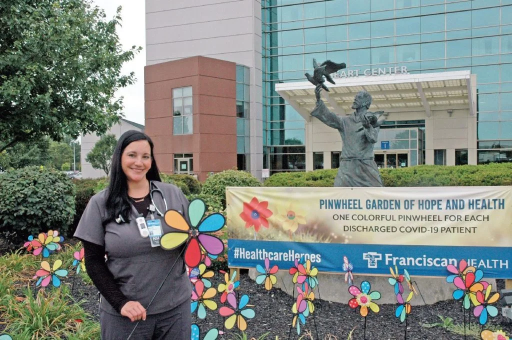 As a respiratory clinical specialist for Franciscan Health, Burford delights in knowing that each of the 466 pinwheels represents a COVID-19 patient who has been discharged from the health care system’s Indianapolis and Mooresville hospitals to date.
