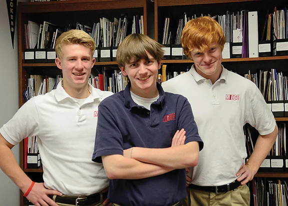 LEAVEN PHOTO BY JILL RAGAR ESFELD Three Bishop Miege seniors scored a near-perfect 35 on their ACT college assessment tests: from left, Andy Slettehaugh, Daniel Mitchell, and Russsell Grey.