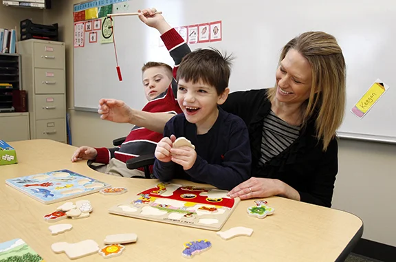 She and one of the other teachers of the class, Kristin Brokaw, an occupational therapist, meet with new families first at home, so they can get to know the child and his or her abilities in a comfortable setting.