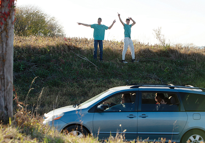 NEKRYC members Jesse Lies, left, of St. Joseph Parish, Flush, and Will Lueger of St. Marys Parish, St. Benedict, help travelers navigate the roads and find parking. LEAVEN PHOTO BY JAY SOLDNER
