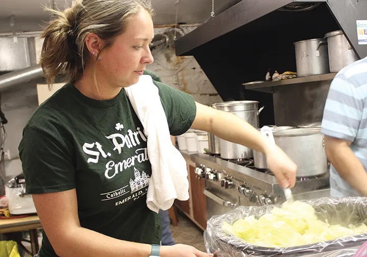 Planning for the event begins in earnest every year in January, and in the weeks and days leading up to the event, members of the Altar Society and other volunteers prepare the food. That often means spending days of four, eight or even 16 hours to prepare nearly 400 pounds of corned beef, cut vegetables and bake bread.
