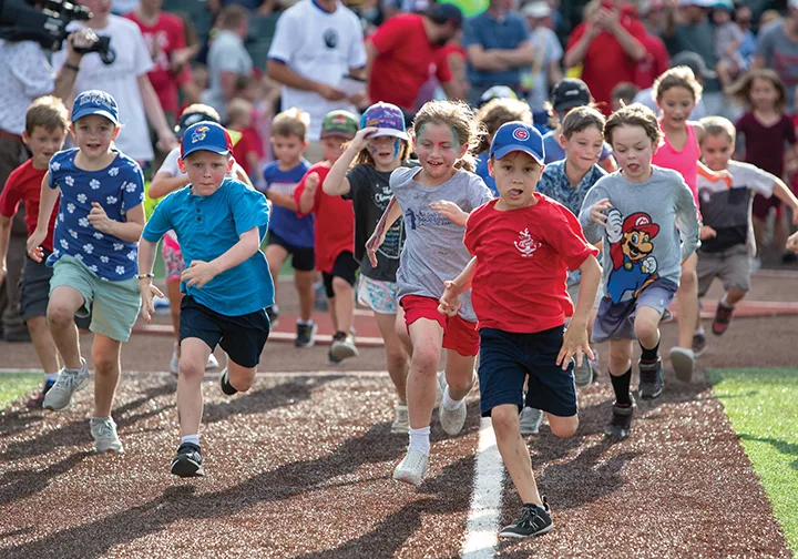 Before the first pitch, kids in the stands were invited to run around Legends Field, home of the Kansas City Monarchs, an MLB Partner League team that plays in Kansas City, Kansas. LEAVEN PHOTO BY JAY SOLDNER