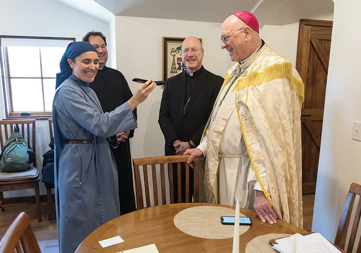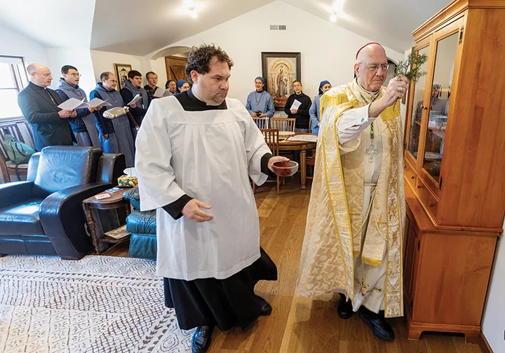 Archbishop Shawn McKnight toured the community’s monasteries and St. Joseph House on Dec. 30, where he joined Archbishop Naumann as he blessed his new home. Father Keith Chadwick, pastor of Christ the King Parish in Kansas City, Kansas, assisted in the blessing.