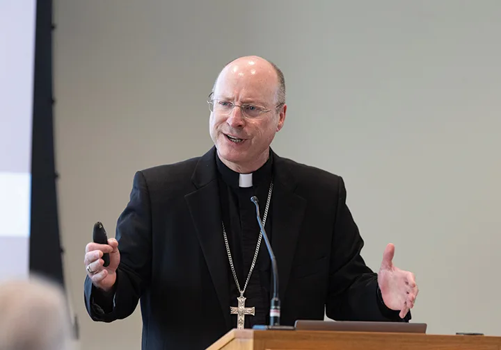 Archbishop Shawn McKnight shared his vision for the archdiocese at the Sisters of Charity of Leavenworth Justice Matters Policy Summit Nov. 5. LEAVEN PHOTO BY JAY SOLDNER