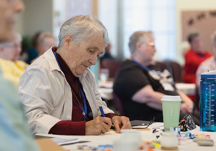 Sister Helen Therese Mack, SCL, takes notes during Archbishop Shawn McKnight’s Nov. 5 address at the Sisters of Charity motherhouse in Leavenworth. LEAVEN PHOTO BY JAY SOLDNER
