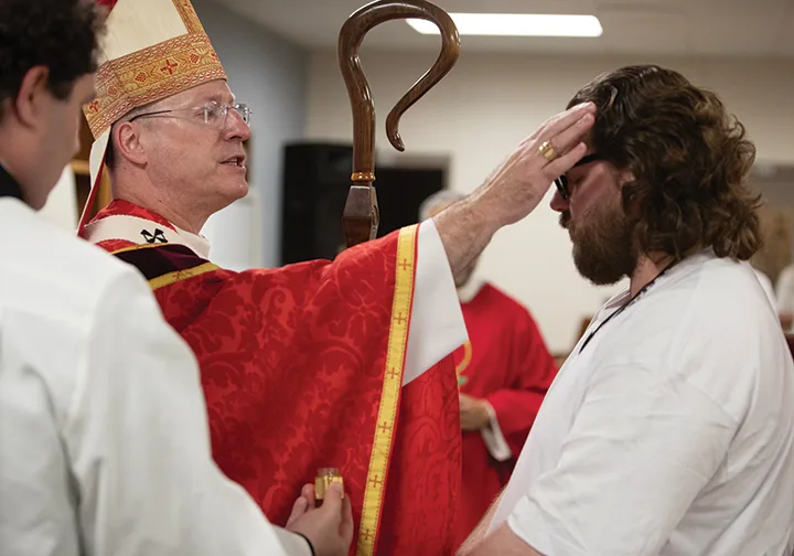 The Aug. 12 Mass was attended by about 20 other inmates, deacons, priests and even a small choir. In his homily, Archbishop McKnight spoke directly to the men being confirmed — not just as inmates, but as brothers in Christ and as members of the faithful.