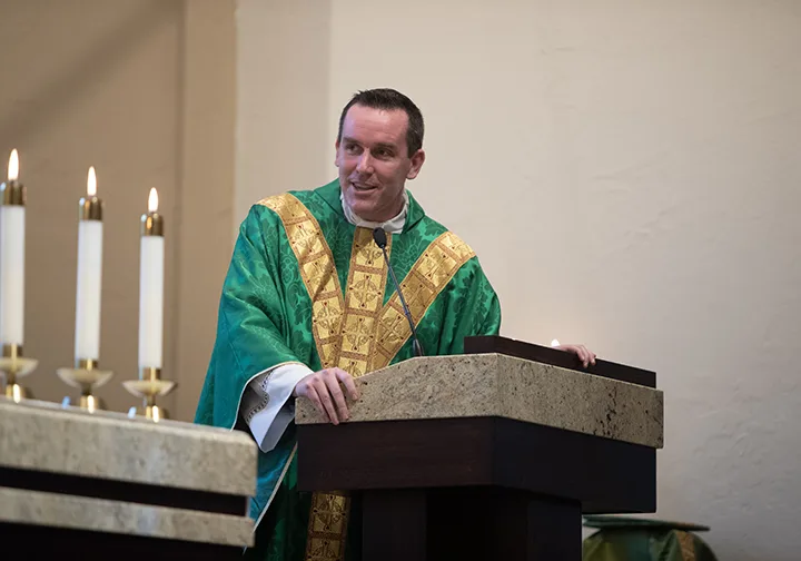 He is a National Eucharistic Preacher and is the chaplain and director of St. Lawrence Catholic Campus Center at the University of Kansas.