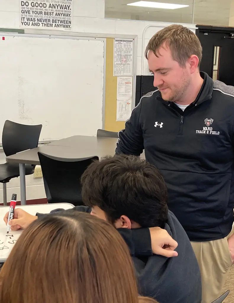 Beyond the classroom, Walterbach serves as a mentor teacher, assistant football and track coach, and head boys basketball coach. He has guided many young people through their academic journeys, including numerous first-generation college students.