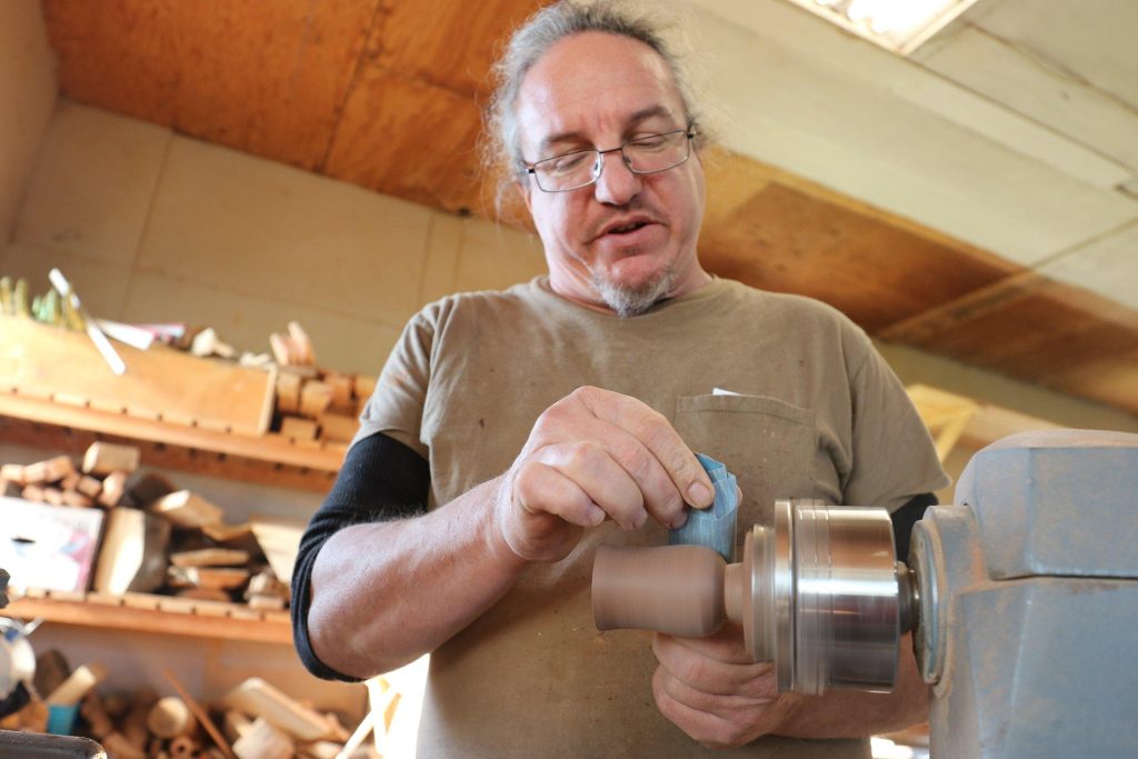 Aguire had woodworking experience, having watched his father at the lathe. It’s not lost on him that converting a rough block of wood into something beautiful symbolizes what he’s trying to do with his life. Having dealt with post-traumatic stress disorder, he finds the craft harnesses his creative power and releases tension.