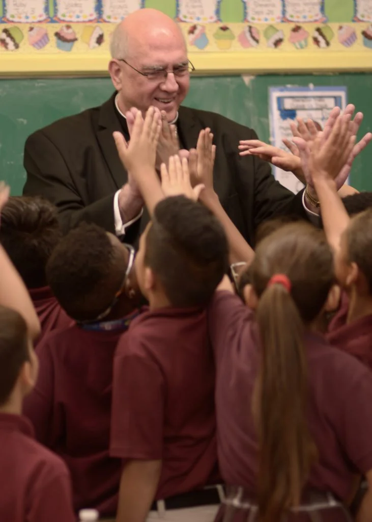 But my favorite, by far, is watching him interact with children in our Catholic schools.