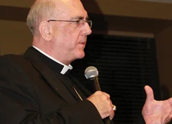 Archbishop Joseph F. Naumann delivers the closing night keynote address on March 24 at the inaugural Symposium for Advancing the New Evangelization.