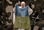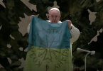 Pope raises Ukrainian flag